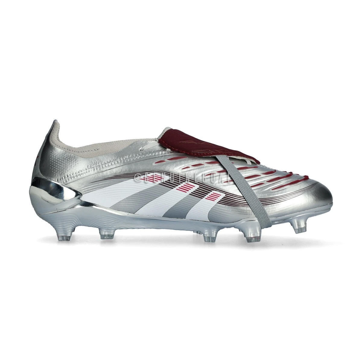 Lleva tu juego al siguiente nivel con las adidas Predator Elite Tongue Bellingham FG en un imponente color Plata Metálico/Burdeos Legacy/Granate, una edición especial que rinde homenaje a la mentalidad ganadora de Jude Bellingham. Parte de la exclusiva colección “Chrome Dream”, estas botas reflejan la ambición y el hambre de títulos del astro del Real Madrid, con su distintivo logo “JB” en la lengüeta, plantilla y talón.